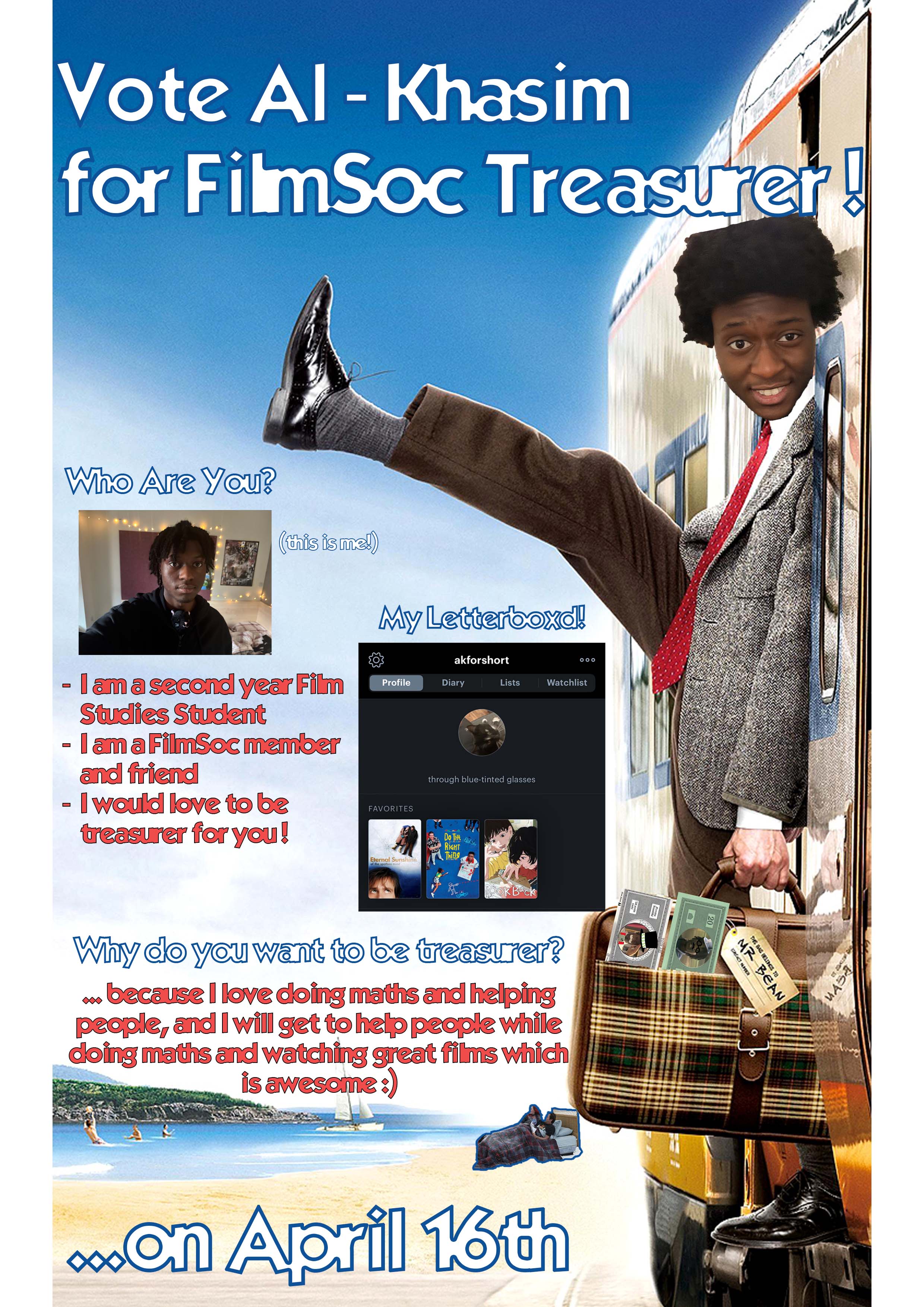 The Treasurer is in charge of the finances of the society, ordering the movies we screen, deciding additional purchases for the audience (snacks, prizes etc) and overseeing the price of memberships. They will oversee the expense system, ensuring any purchases made for the society are reimbursed to the committee member.