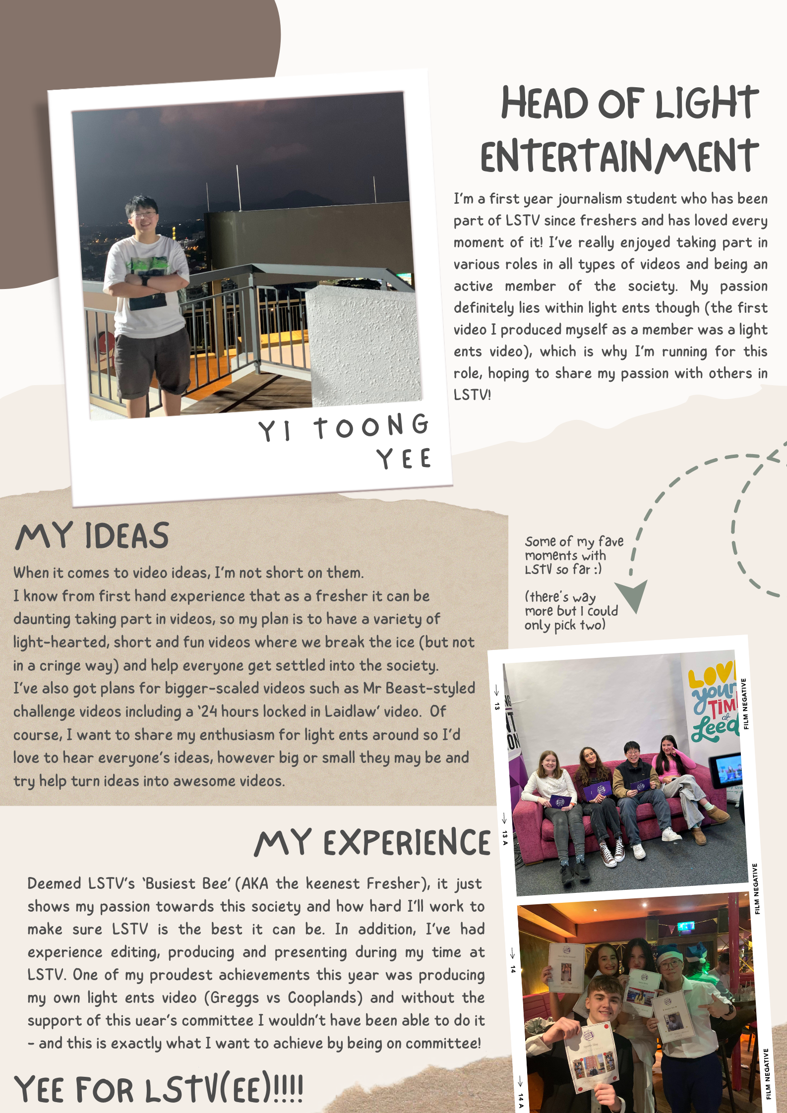 Head of Light Entertainment for LSTV - oversees the production of light entertainment videos 🎥