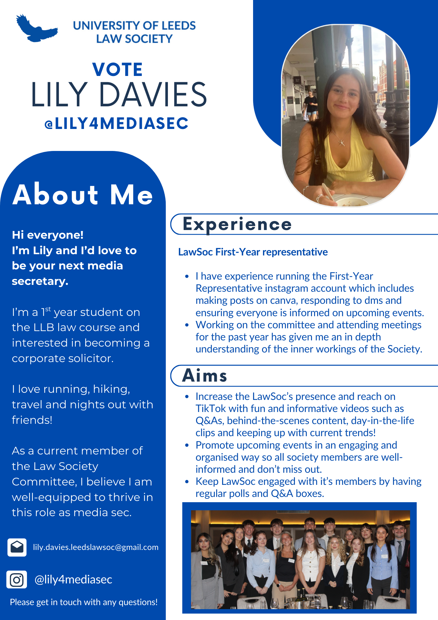 Media Secretary of the Leeds Law Society for the 2026/27 academic year. Please see responsibilities HERE