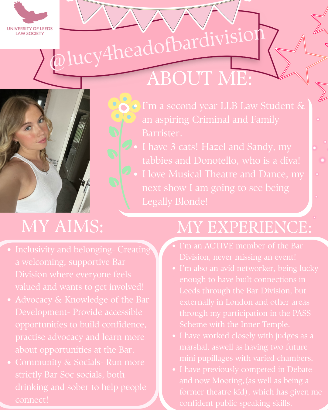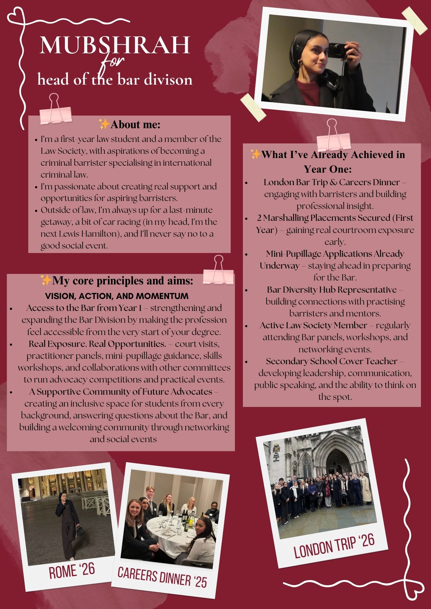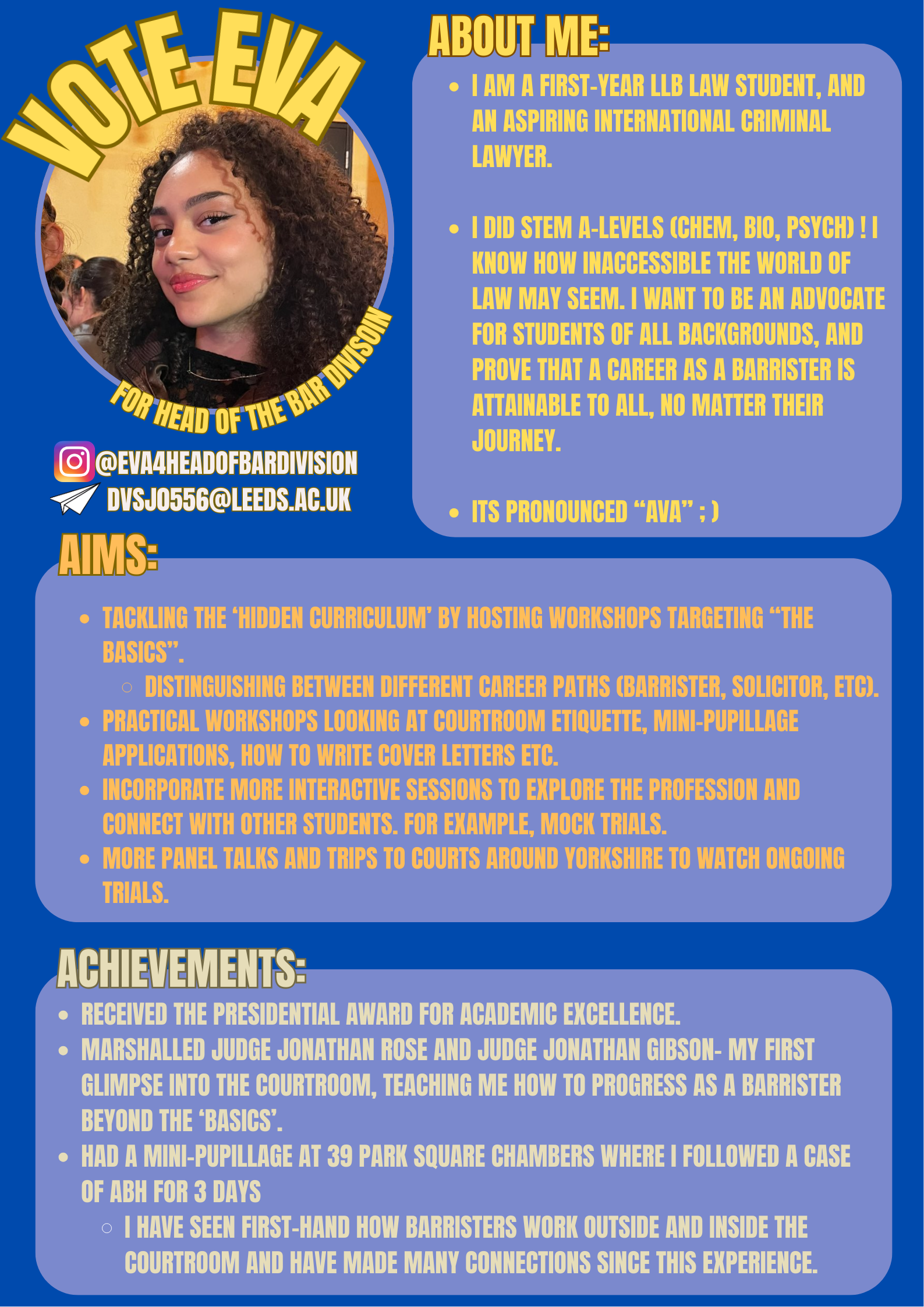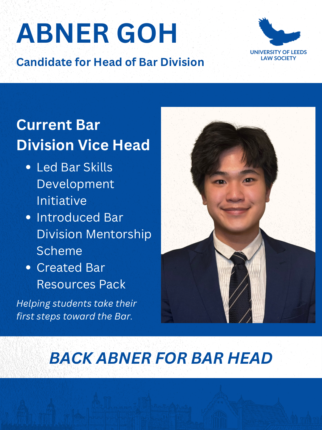 Head of the Bar Division of the Leeds Law Society for the 2026/27 academic year. Please see responsibilities HERE