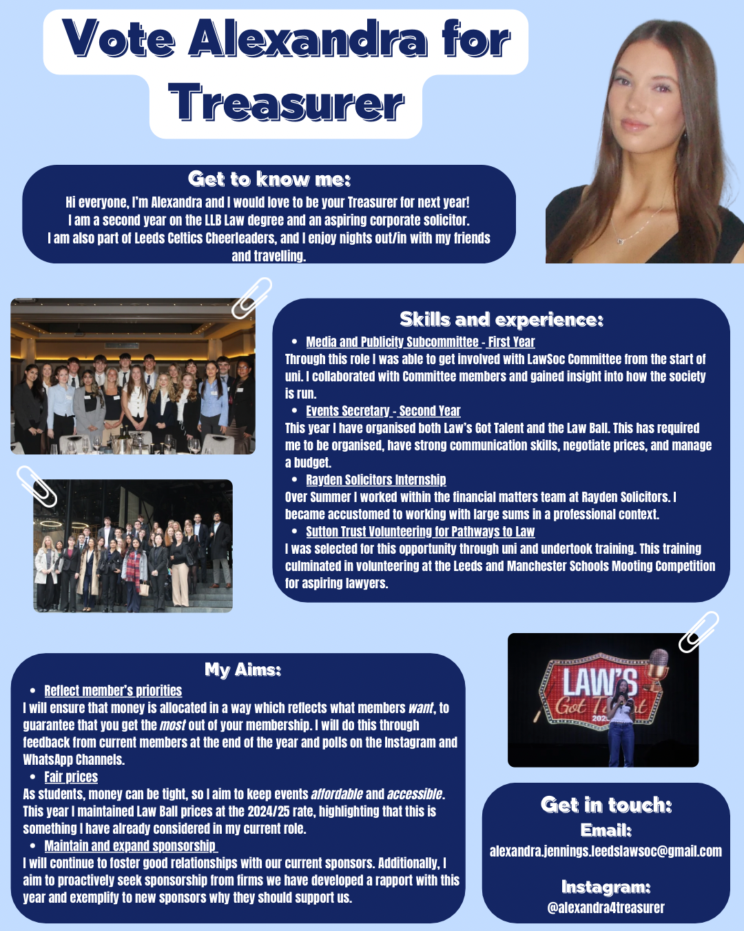 Treasurer of the Leeds Law Society for the 2026/27 academic year. Please see responsibilities HERE