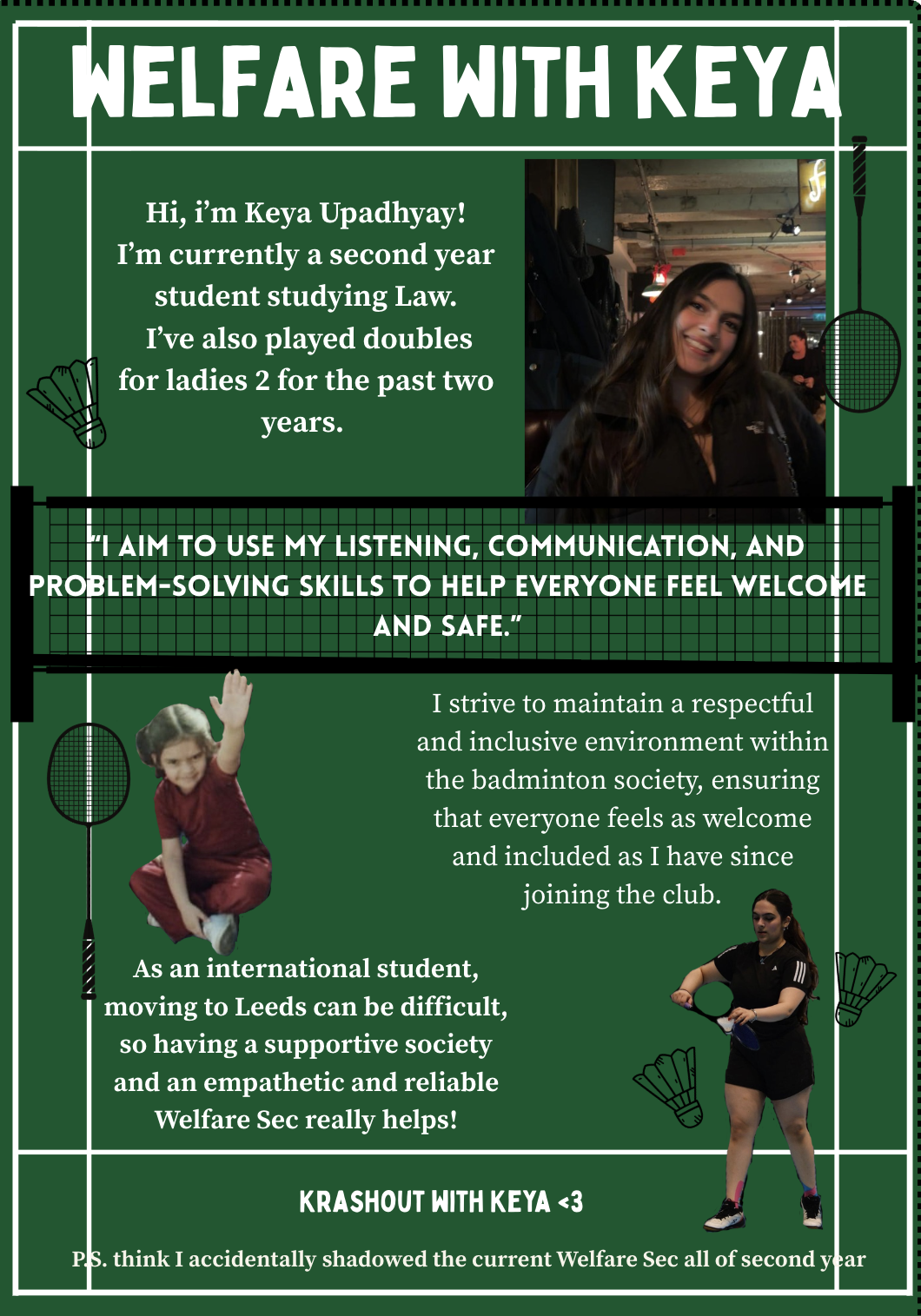 - run specific welfare events e.g. womens only socials