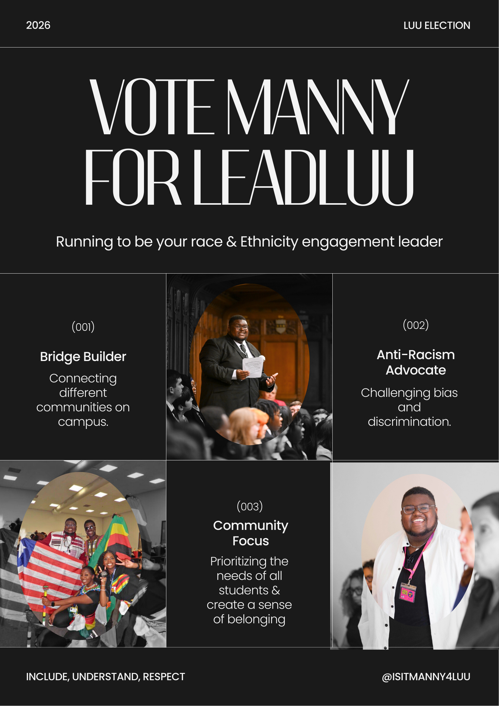 Representation is not a box to tick; it’s a responsibility. I will work to ensure that LUU’s decisions, events, and spaces reflect the diversity of the students they serve. That means:
