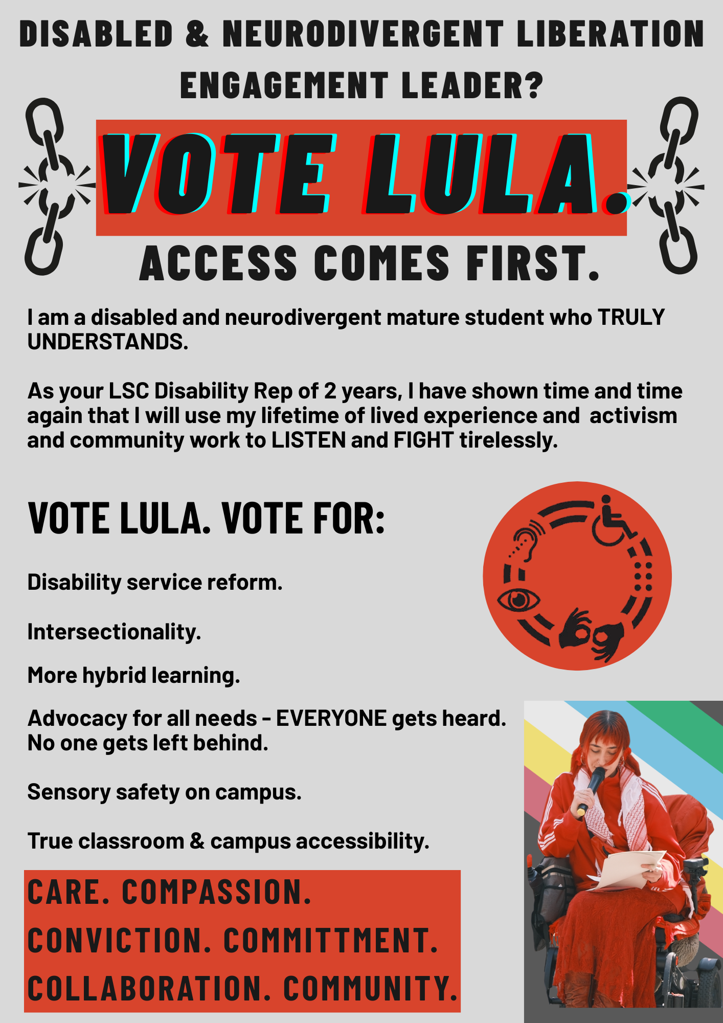 built for. I would love to represent my disabled/neurodivergent community, channel my