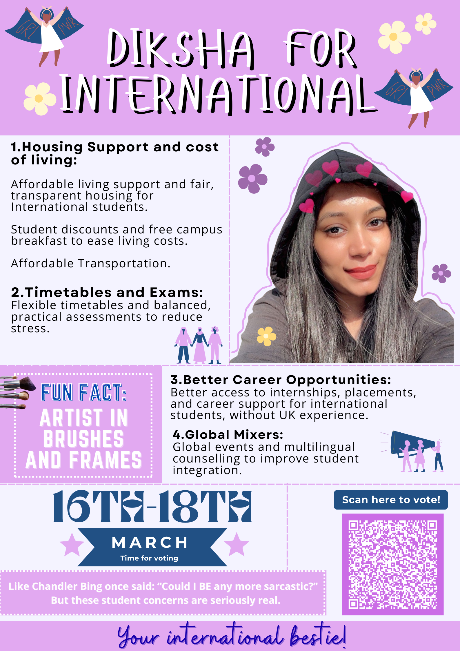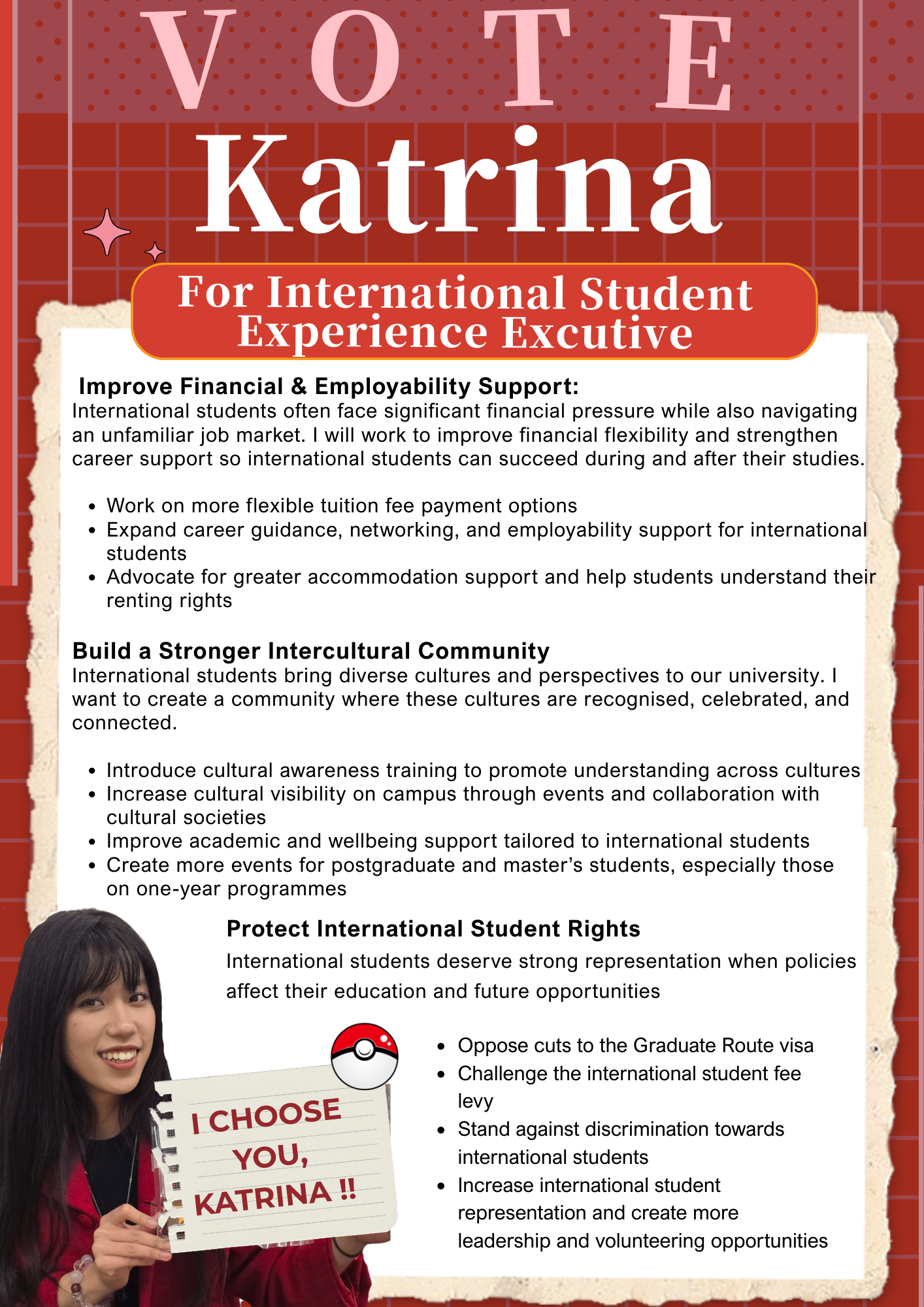 This role focuses on Influencing and Advocating for LUU's International students. They ensure that international students are represented, celebrated and supported. Integrates cultural societies and creates grassroots engagement through new roles.