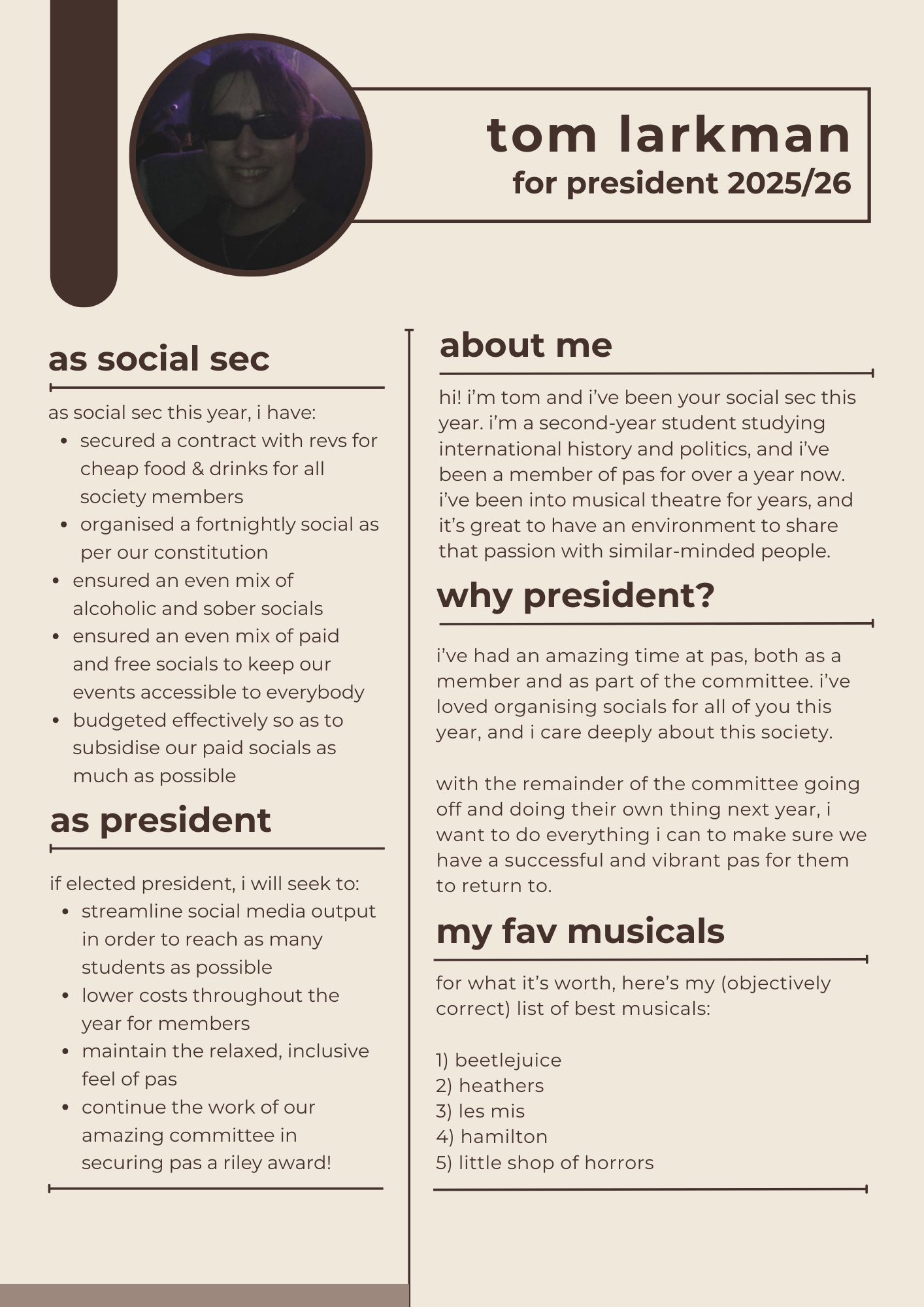 - Only active members of Performing Arts can vote in this election
