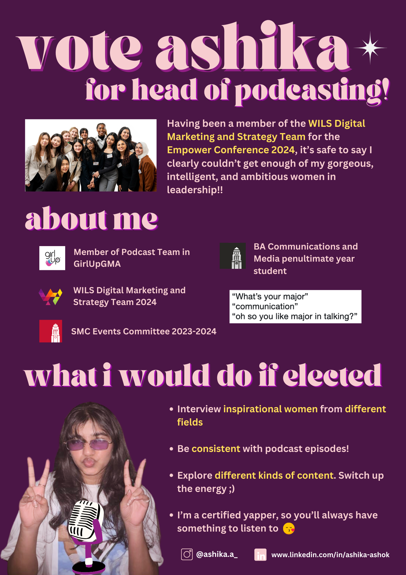 The Head of Podcast is mainly responsible to produce our WILS "Behind Her Success" podcast! There are a few main responsibilities that come with the role of the Head of Podcast:
