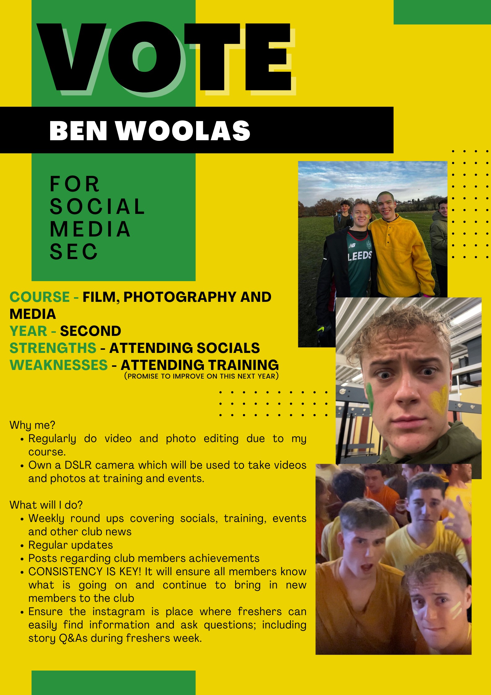 Responsible for coordinating the club's social media presence - particularly the Instagram account - advertising club events, races and club communication.