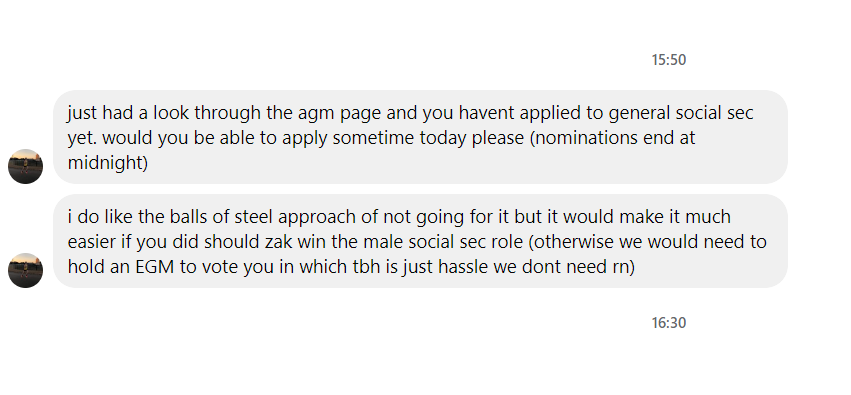 General Social Secretary - please nominate yourself for both the gender with which you identify and the general social secretary role as well