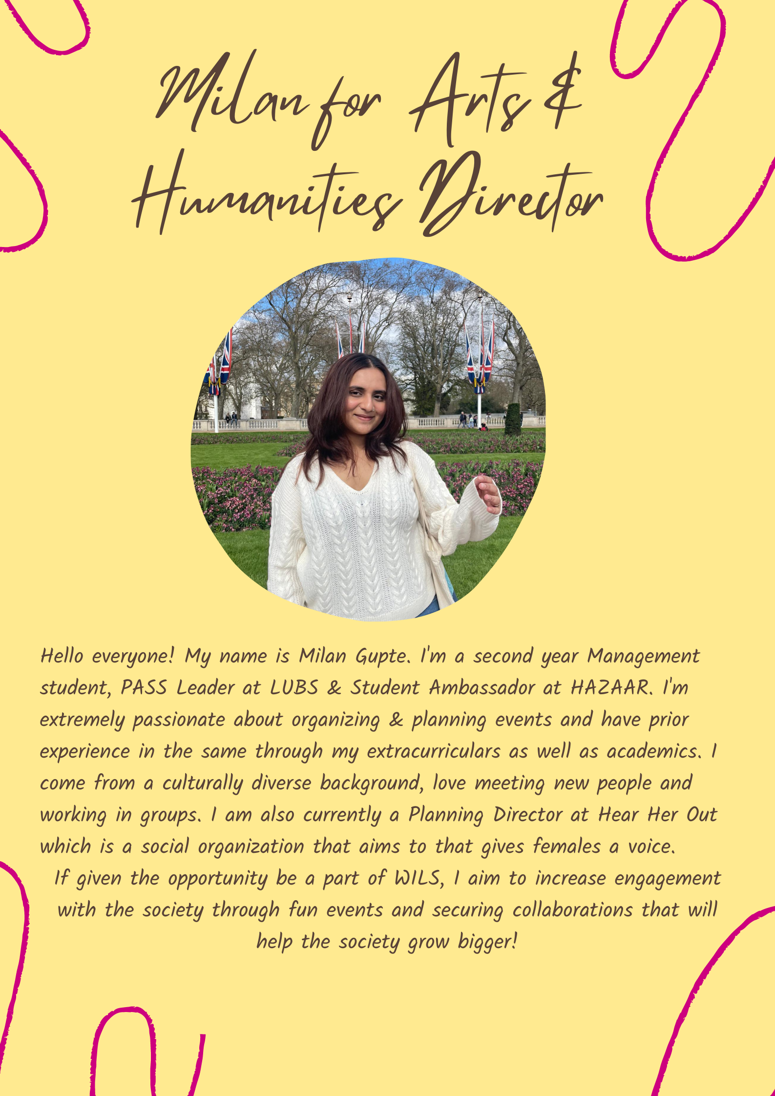 The Arts & Humanities Director at WILS plays an important role in supporting WILS members studying Art & Humanities degrees professionally! There are a few main responsibilities that come with the role of the Art & Humanities Director, including: