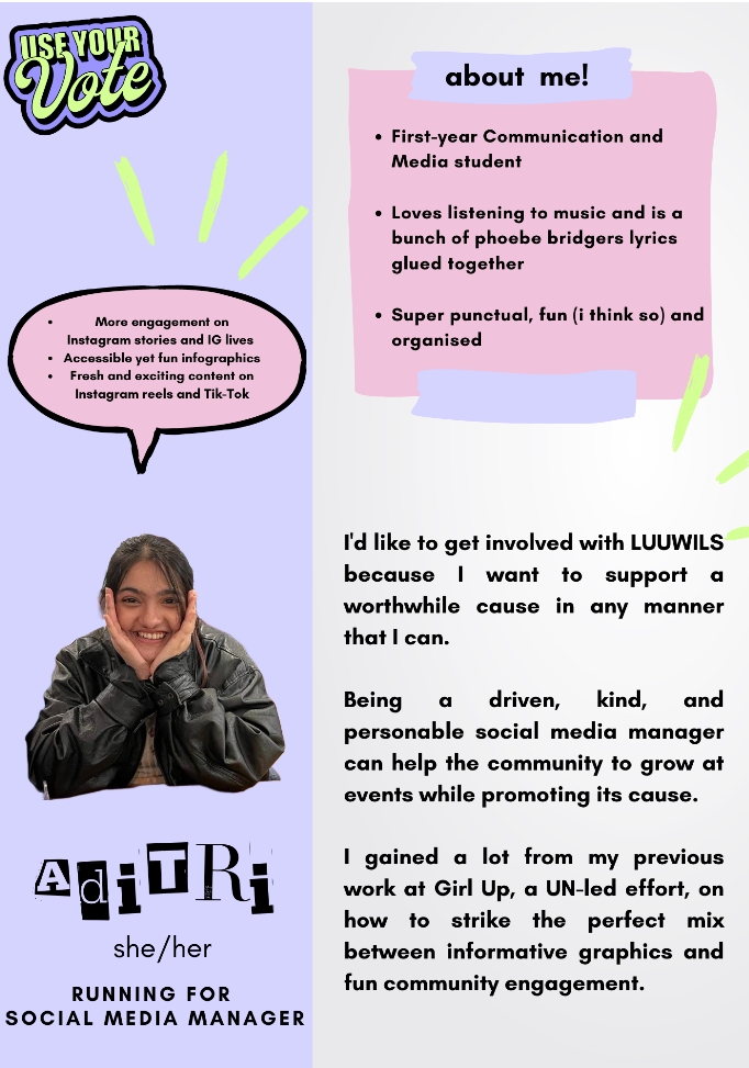Social Media Manager supports the society in advertising upcoming WILS events and initiatives! There are a few main responsibilities that come with the role of the Social Media Manager, including:
