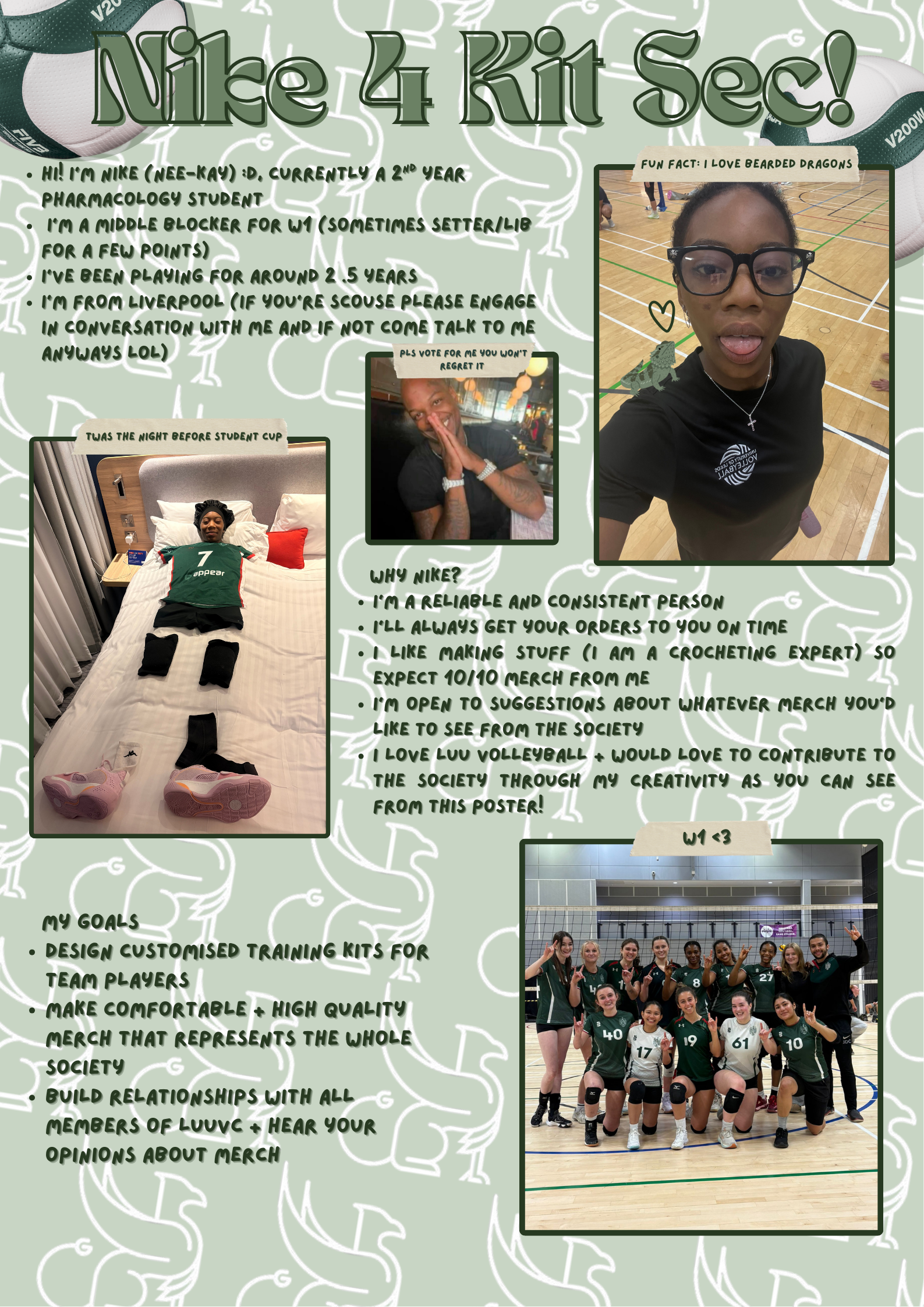 Responsible for managing and maintaining the club’s kit and equipment to ensure everything is organised, accessible, and accounted for. The role involves keeping an up-to-date inventory of all club equipment, coordinating with team captains when kit is required for matches or events, and organising society clothing orders. Additionally, the position ensures the club has the necessary equipment by arranging purchases and replacements when required.