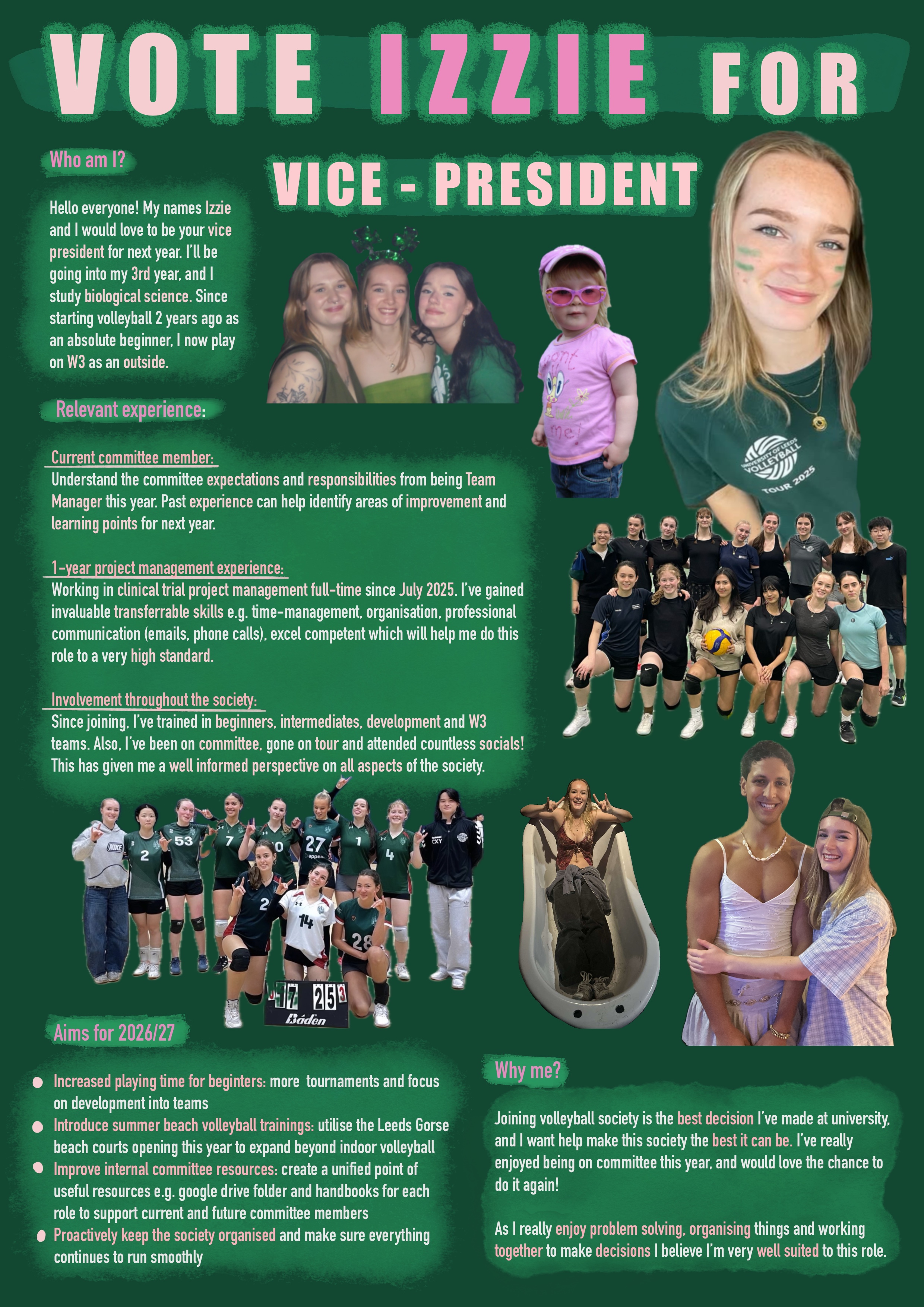 The role of the VP involves working behind the scenes and ensuring smooth running of the society. It requires having a good context of most aspects of the club and helping out when things are unclear.