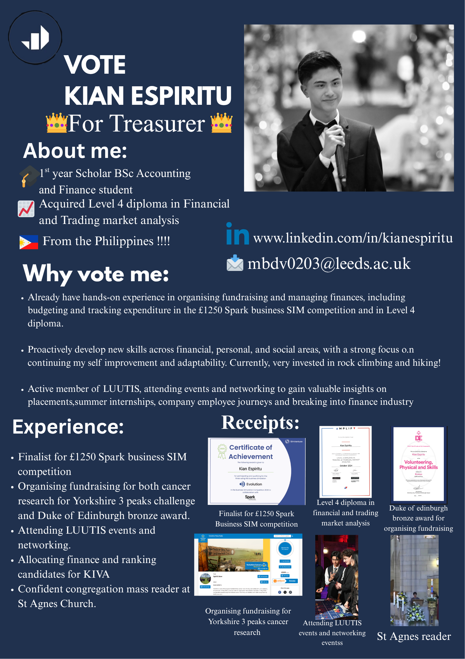 Take the lead in organising the Spring Ball from a financial and logistical perspective