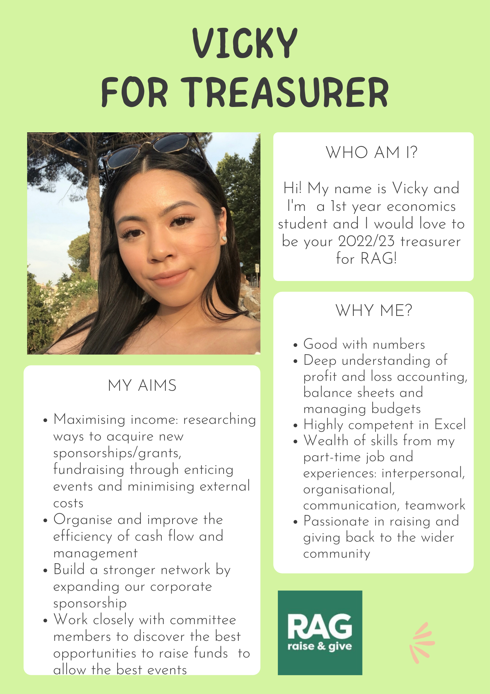 The Treasurer of RAG manages accounts, creates budgets and tracks spending and fundraising income.