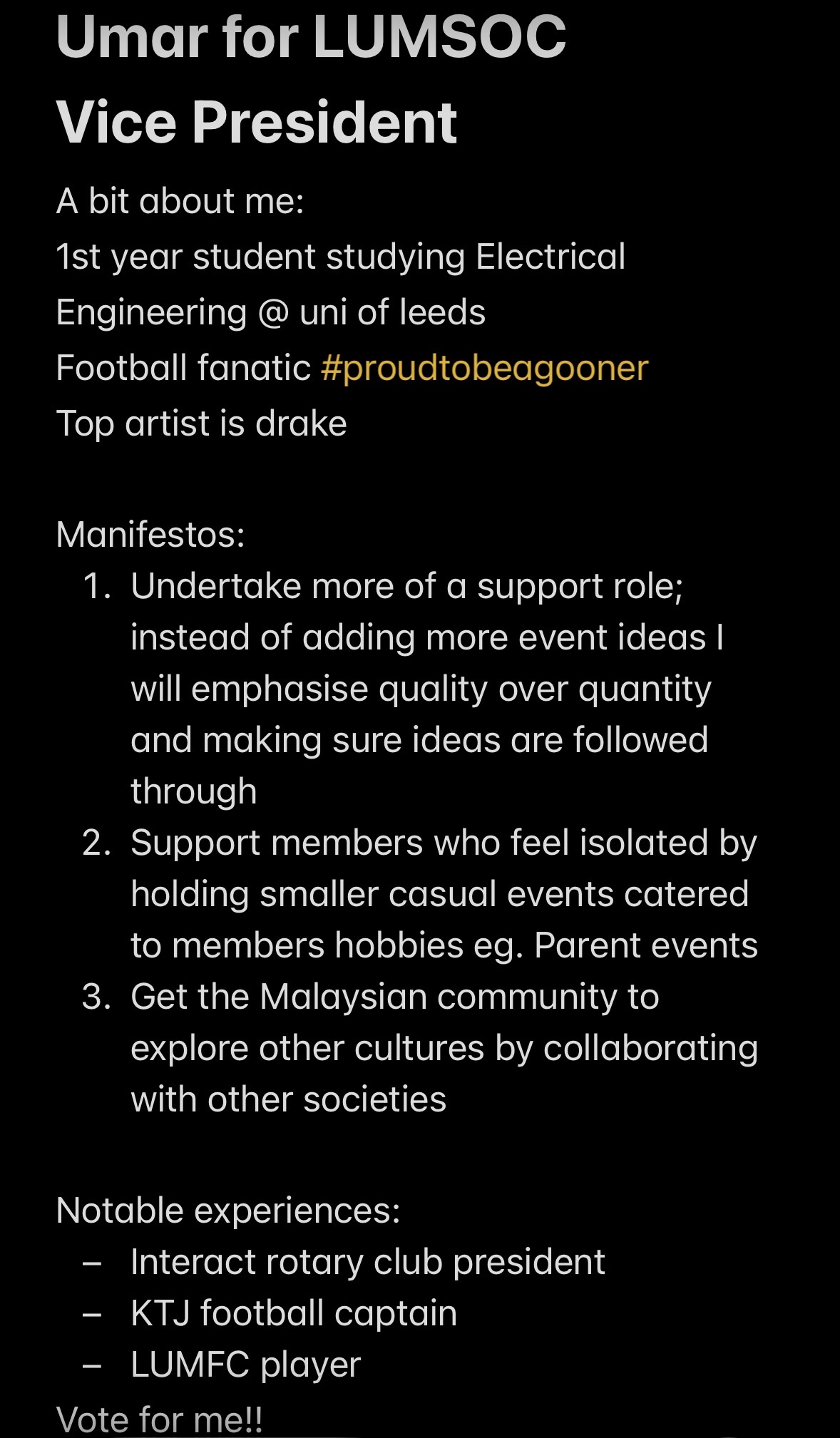 For more information, please email lumsoc.committee@gmail.com with the subject: Vice President.
