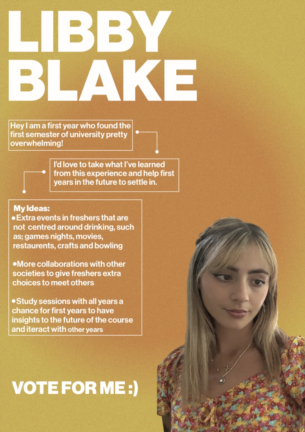 - Bring ideas on how to make the first years feel welcomed and minimise feeling overwhelmed in their first year.