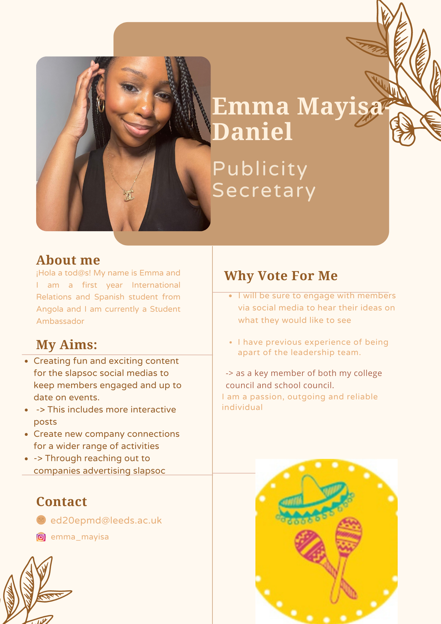 The publicity secretary will be in control of SlapSoc's social media accounts, by managing and creating content. You will be in contact with companies that want to collaborate, and advertising all of the great things we have on offer.