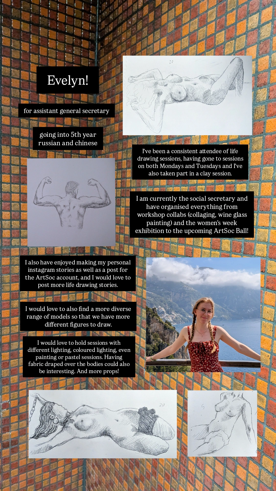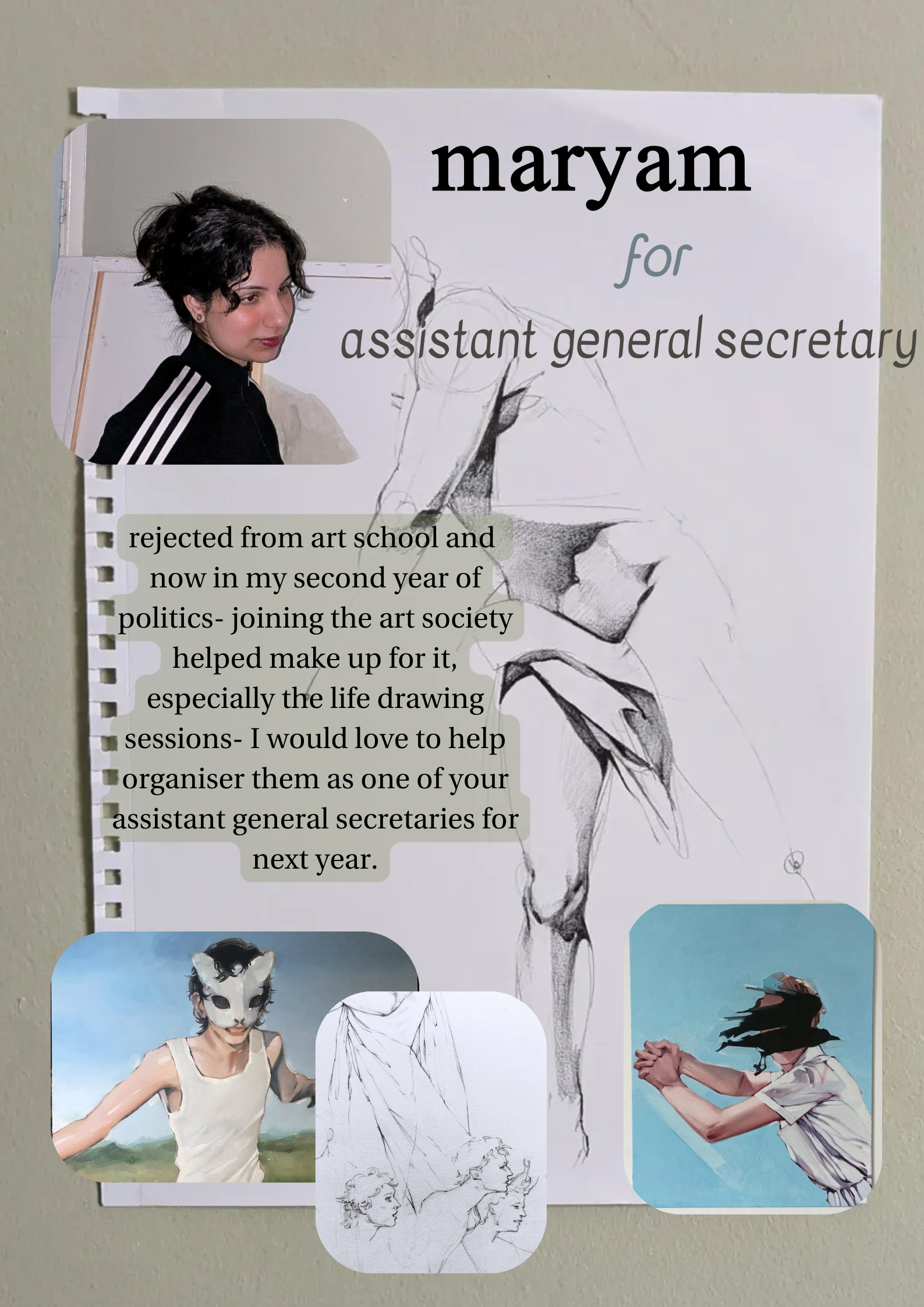 The life drawing secretaries, or assistant general secretaries, help run weekly life drawing sessions. You’ll either be assigned for Monday or Tuesday depending on your preference! You set up, check inventory, make models comfortable and help the secretary.