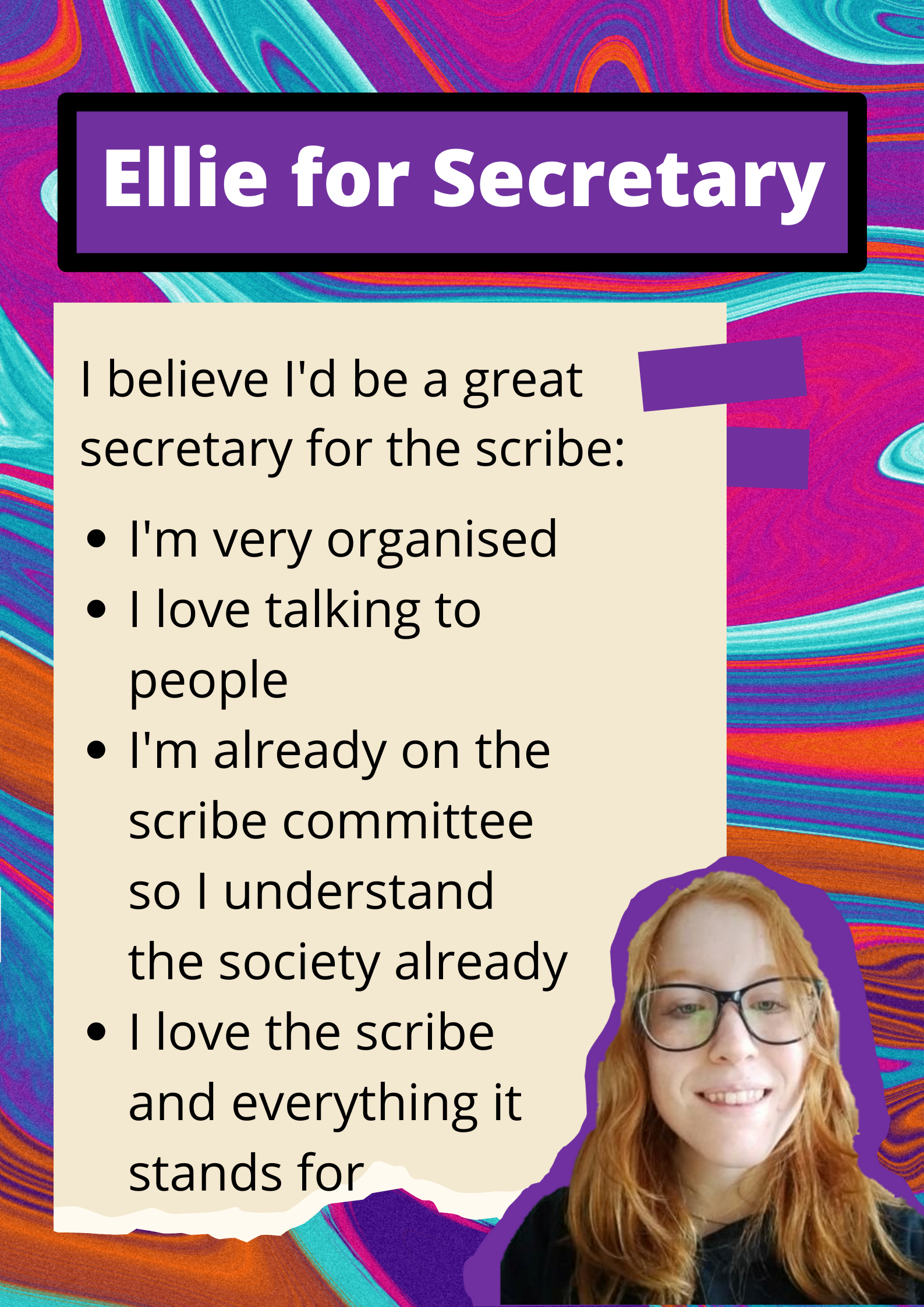 Internally, you will work closely with the president and treasurer to handle administrative duties that are vital to keeping the society going. You will help run our committee meetings, where you will take minutes.