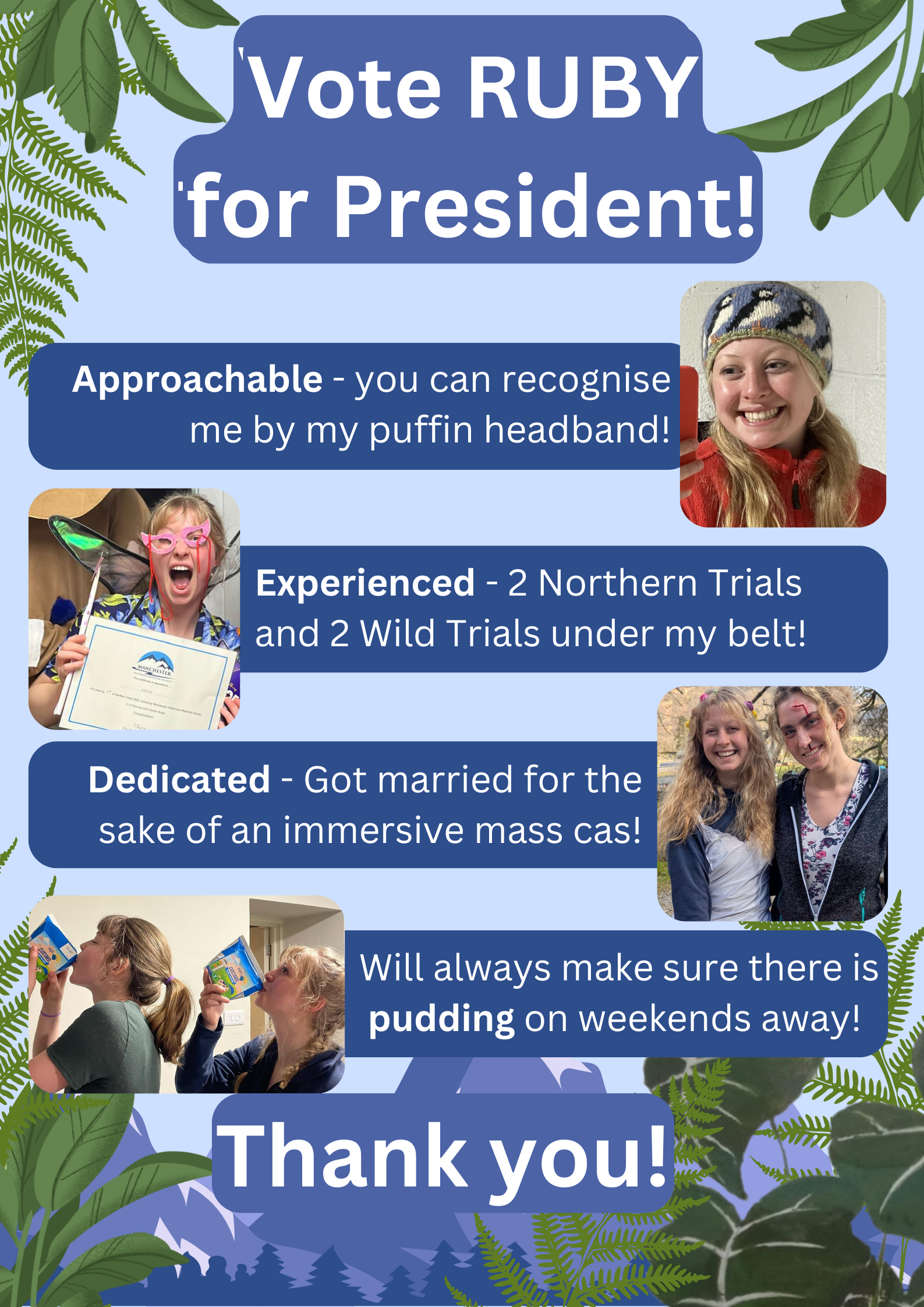 Want to be our Wildling chief? Then step on up to the role of president. You are the one who oversees, directs and delegates. You are the fuel that keeps this society running!
