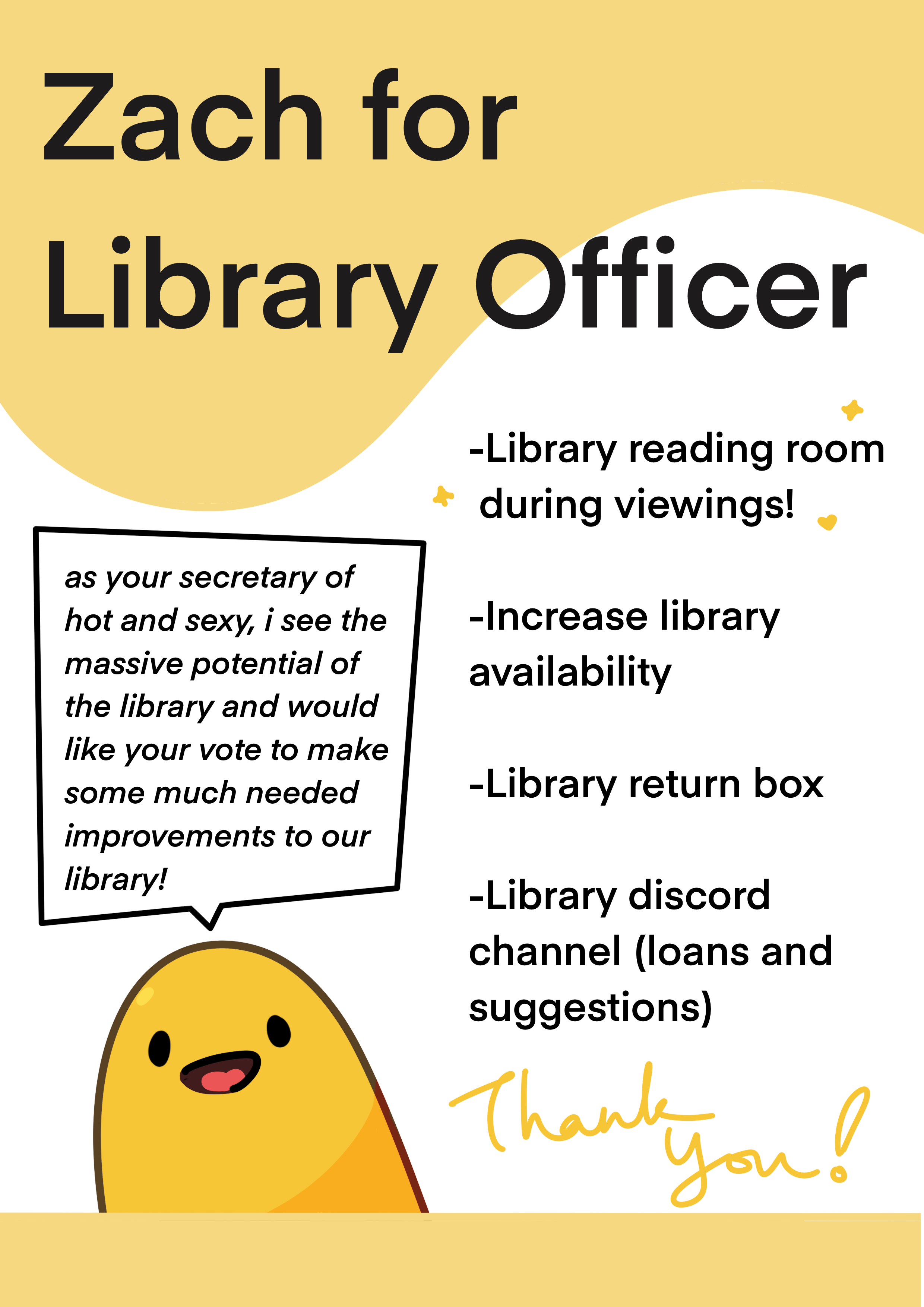 Responsible for: handing out and collecting manga to members, chasing people who forget to return manga, spending the library budget on new volumes.