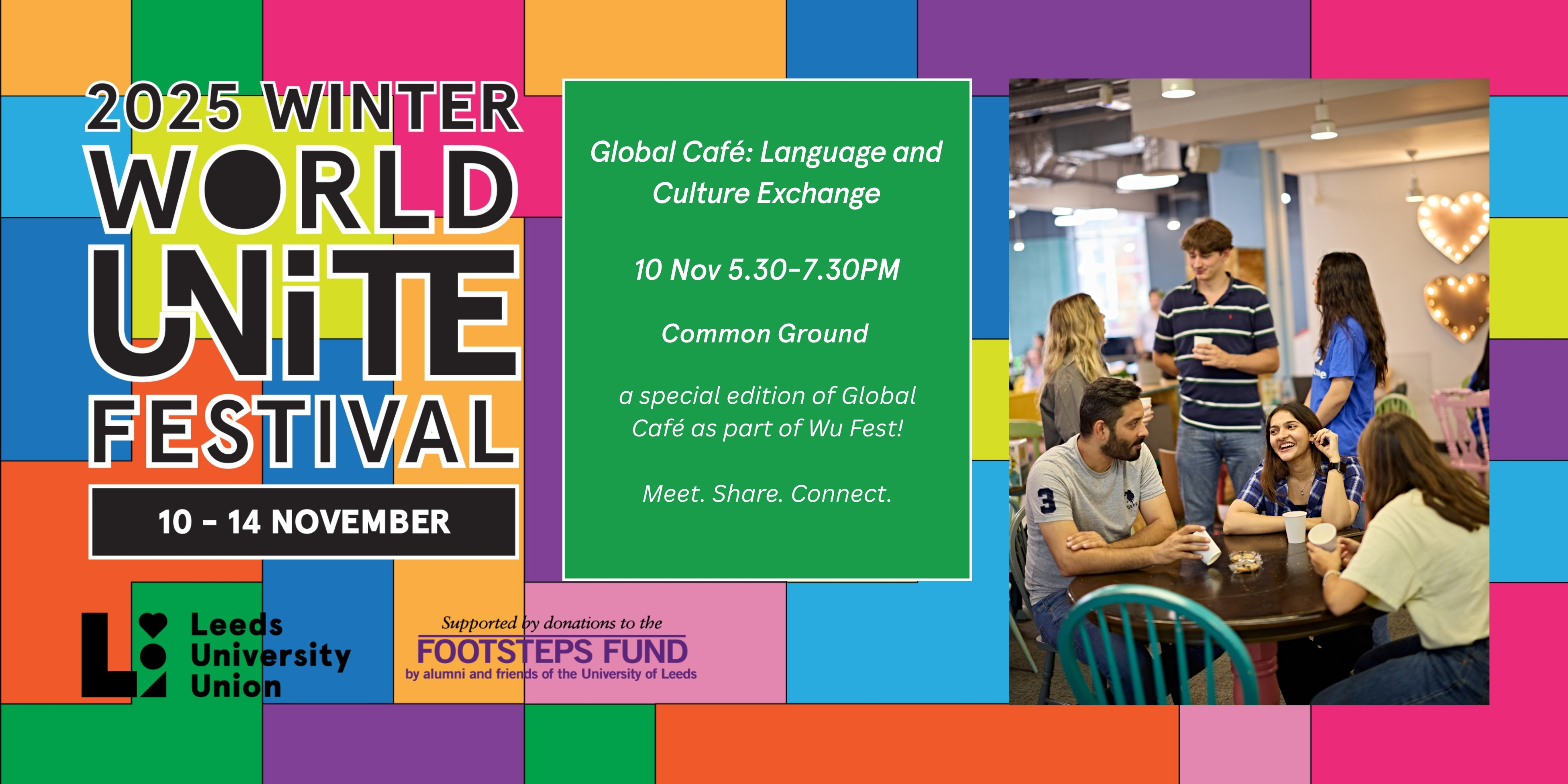 Join us for a special edition of Global Café partnership with Culture Corner as part of Wu Fest! This weekly gathering is a relaxed and welcoming space for current students and postgraduate researchers to connect across cultures, share languages, and celebrate global perspectives.