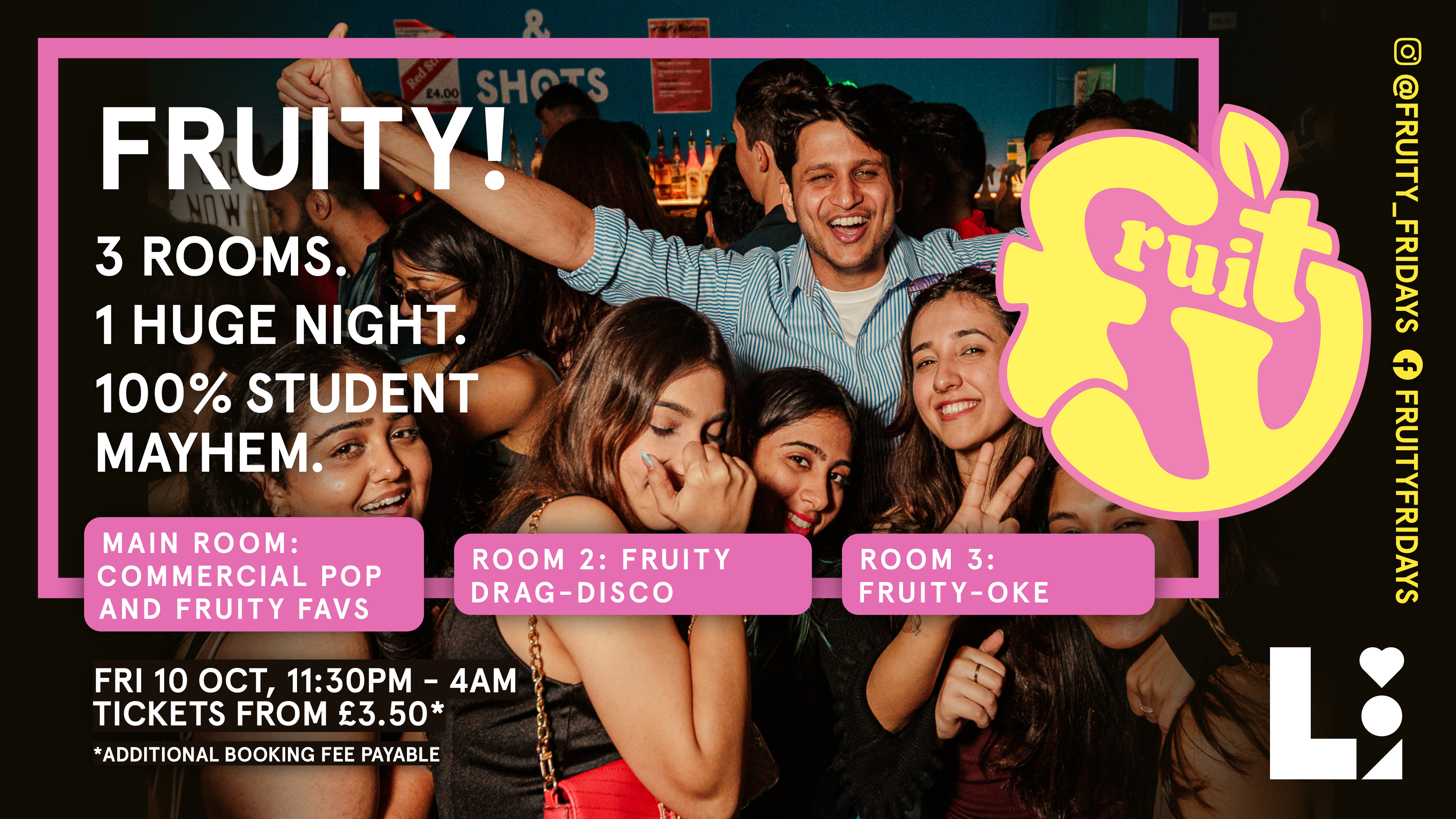 Fruity is BACK on Friday for your weekly fix of bangers, silliness and vibes. Expect the ripest tunes, student-loan friendly drinks deals and the best student party in Leeds.