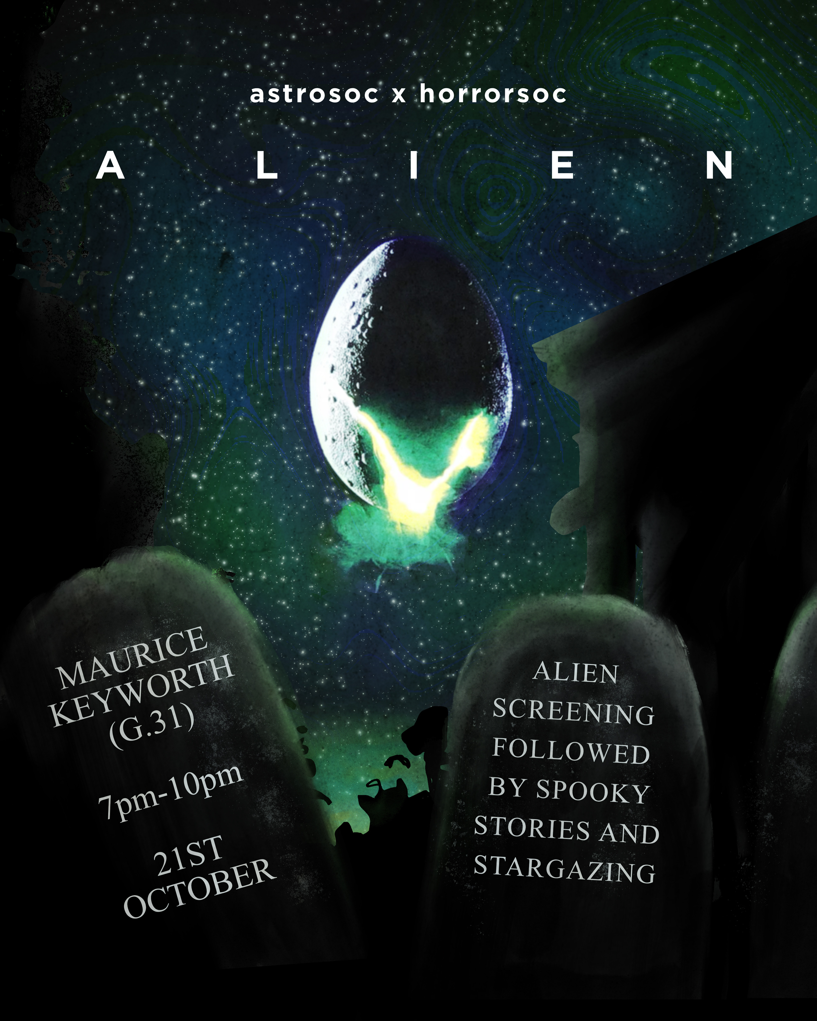 Horror and Astronomy invite you to an Alien screening followed by spooky stories and hopefully stargazing in St. George’s Field.