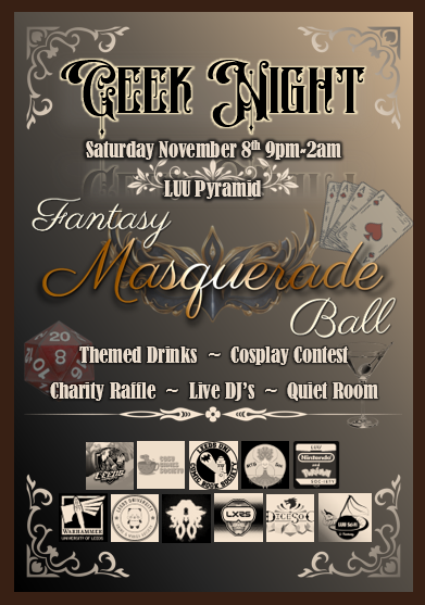 For those who are new, Geek Night is a massive cross collaboration between all the nerdy and geeky societies at LUU, including Nintendo and Pokemon, SciFi and Fantasy, ESports, Warhammer, Comic Soc, and more. This is a club night where our own members are the DJs and we do our best to include everyone no matter your abilty or interests. Cosplay and costumes are highly encouraged, the theme above is only a guide so you can show up wearing anything that doesn't break union rules :D