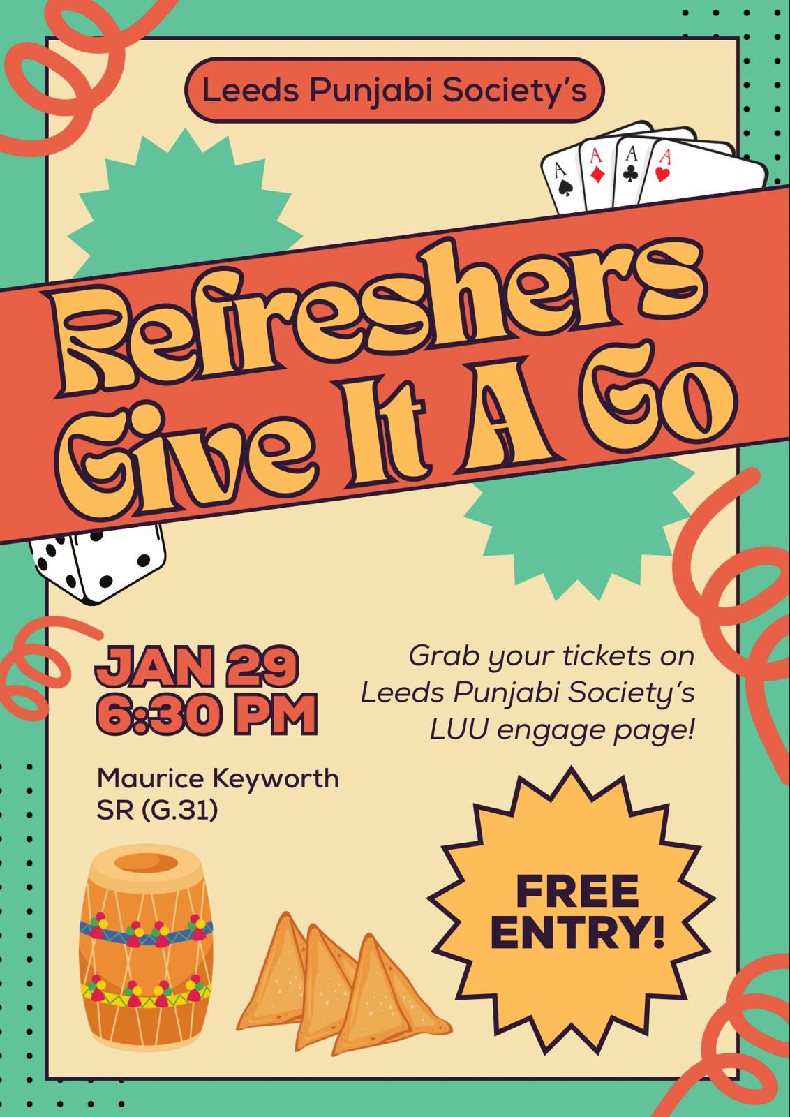 Come along to our Leeds Punjabi Society semester 2 GIAG! Whether you’re Punjabi or just curious about the culture, you’re welcome. Expect good vibes, music, games, and a chance to meet new people. Bring your friends and come chill with us - you won’t regret it.